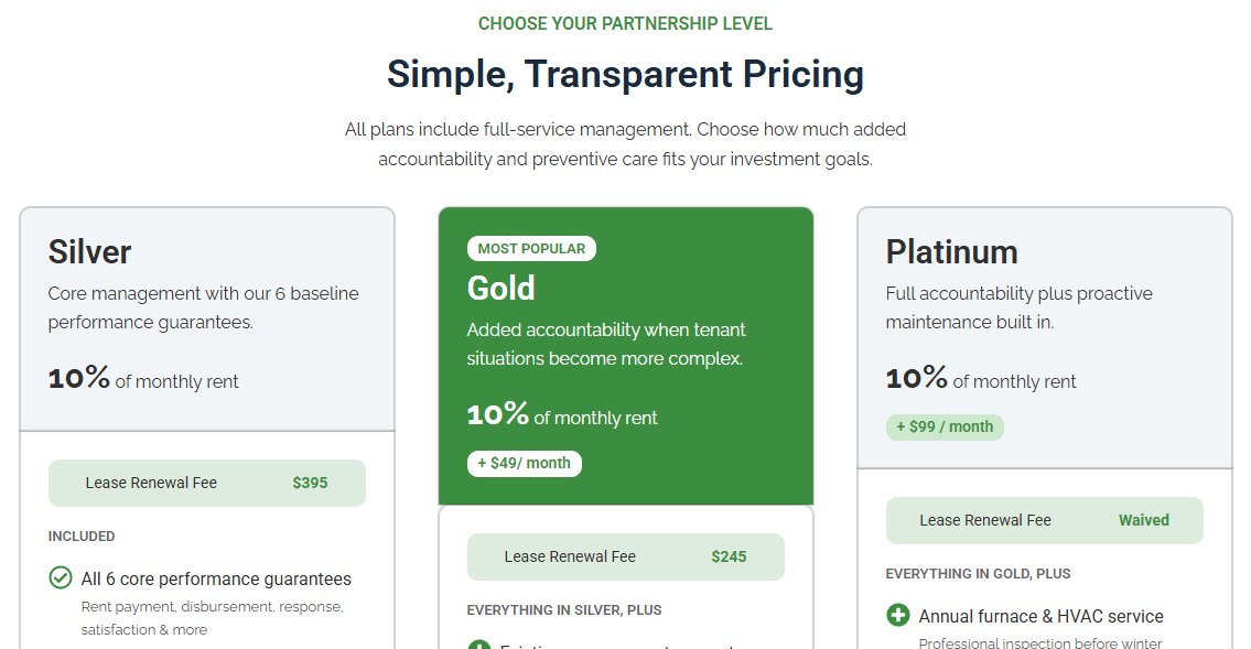 All plans include full-service management. Choose how much added accountability and preventive care fits your investment goals.